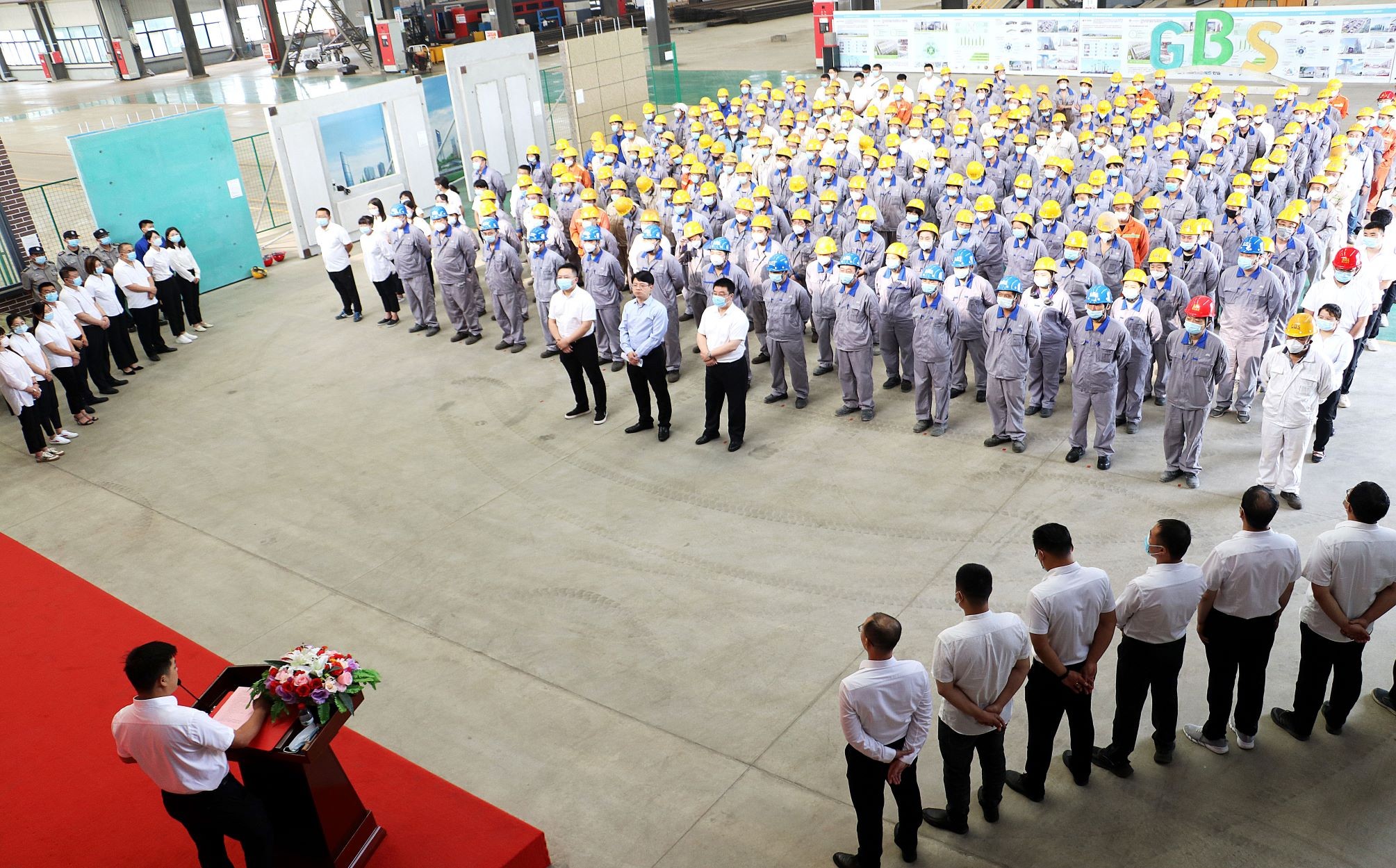 2021年8月8日上午8時(shí),吹響沖鋒號(hào),在精工綠筑工廠展廳隆重舉行了“大干一百天”動(dòng)員誓師大會(huì)儀式,公司總經(jīng)理王曉春、副總經(jīng)理屠國平等領(lǐng)導(dǎo)及全體管理干部、生產(chǎn)全體職工350余人共同出席大會(huì)。會(huì)議現(xiàn)場氣氛莊重?zé)崃?,與會(huì)人員斗志昂揚(yáng),充分展現(xiàn)了精工人的“